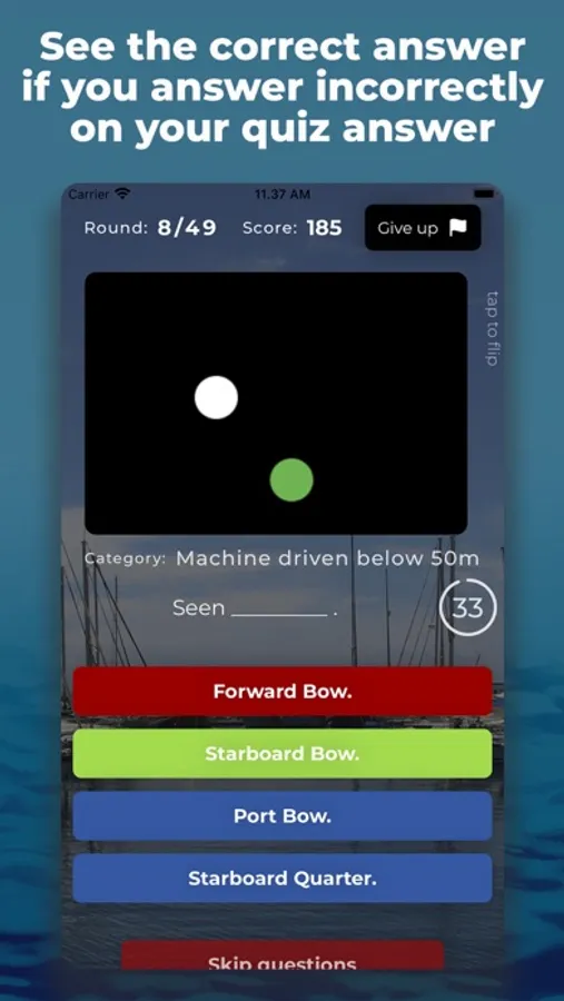 With a simple Quiz where you can test your skill in and recognize the characteristics and formations of Ship's lights.