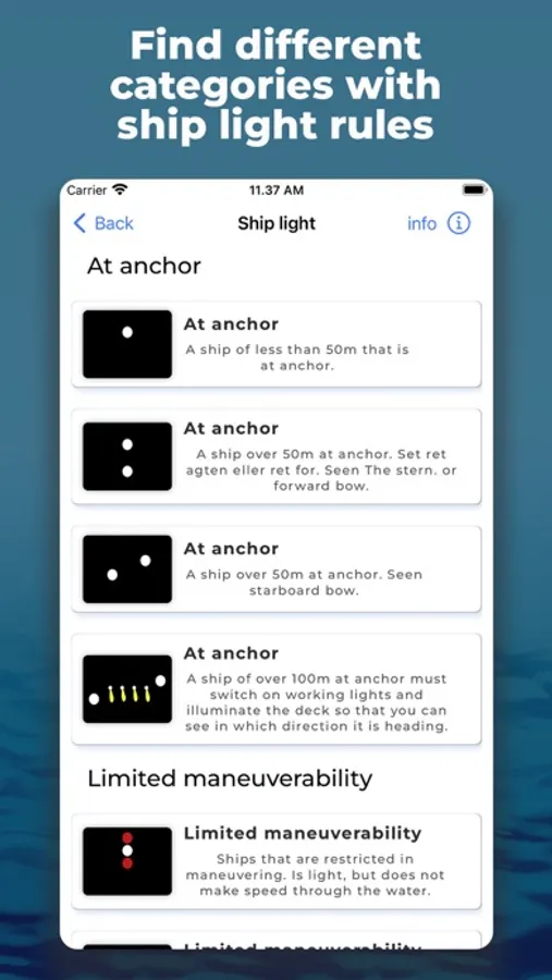 find illustrations with descriptions and categories of the various ship lights you can find in the app.