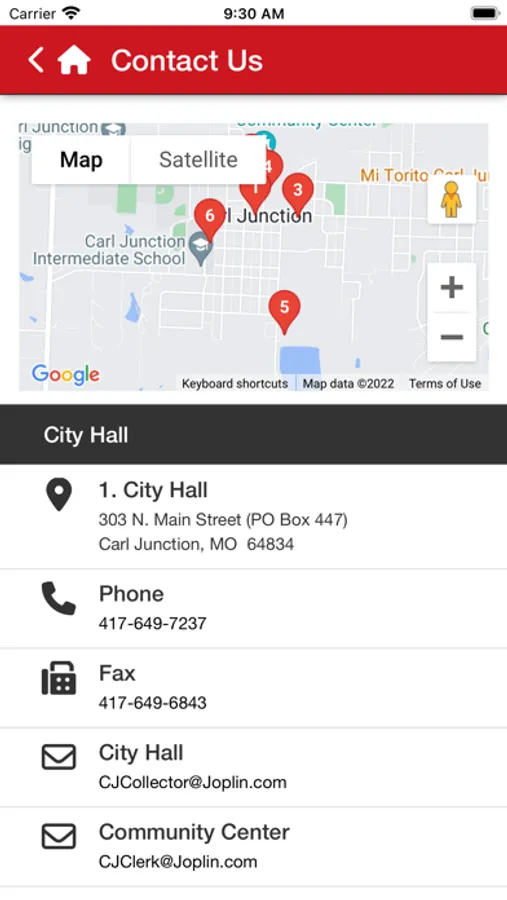 Users also have quick access to important contacts using the Staff Directory where they can contact employees at City of Carl Junction.