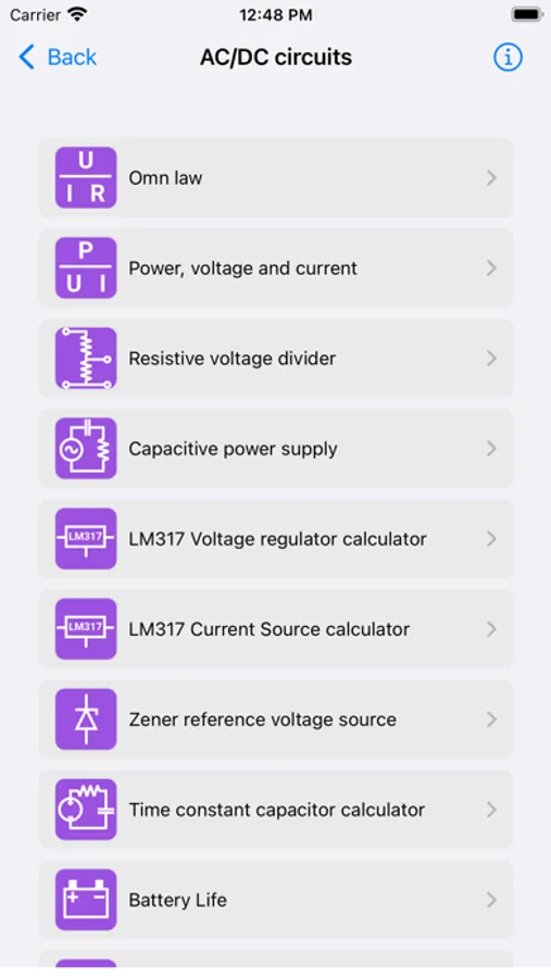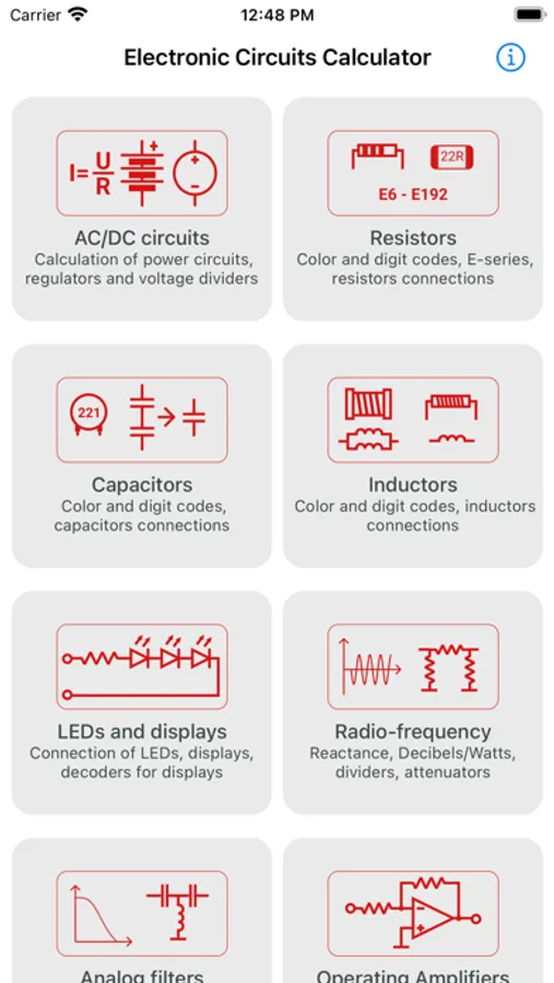 It contains calculators for circuit designers to help quickly solve following calculations: