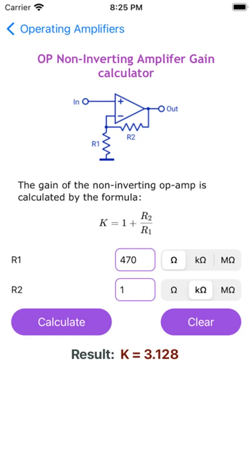 Operating Amplifiers - Calculation of non-Inverting and inverting amplifier gain