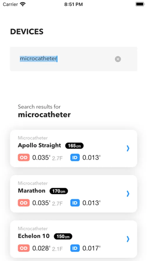 Easily search and calculate compatibility between intervention devices.