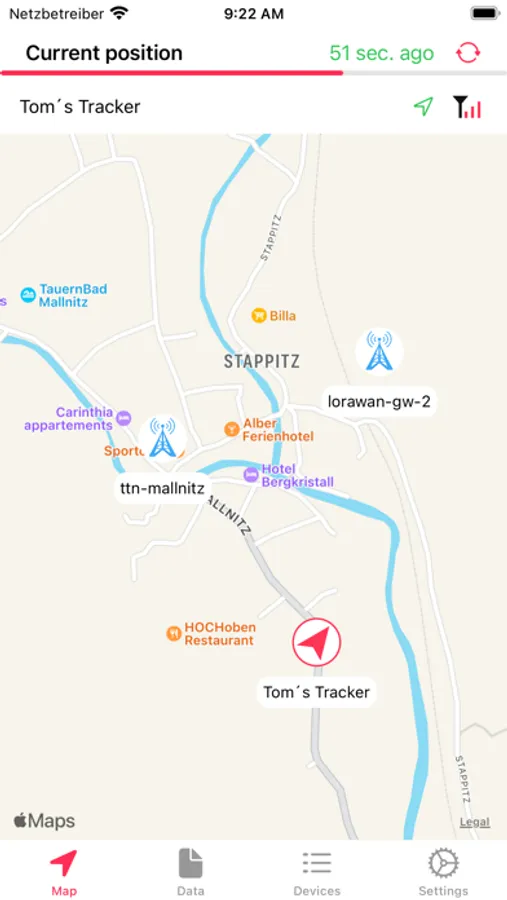 LoWTrack displays the current position of your LoRaWAN GPS trackers. LoWTrack also provides you with a lot of information about your local LoRaWAN network and you can query all status parameters of your tracker. Currently the app supports the LoRaWAN networks TTN (The Things Network) and Helium. To use LoWTrack for your GPS trackers, you need a free LoWTrack account and a working LoRaWAN integration.