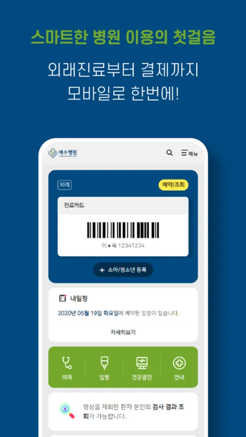예수병원을 편리하게 이용할 수 있는 모바일 어플리케이션 입니다