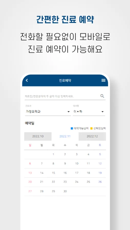 모바일앱에서 진료예약을 간편하게 할 수 있습니다.