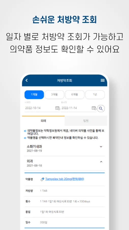 병원에서 처방 받은 약을 한눈에 확인할 수 있습니다