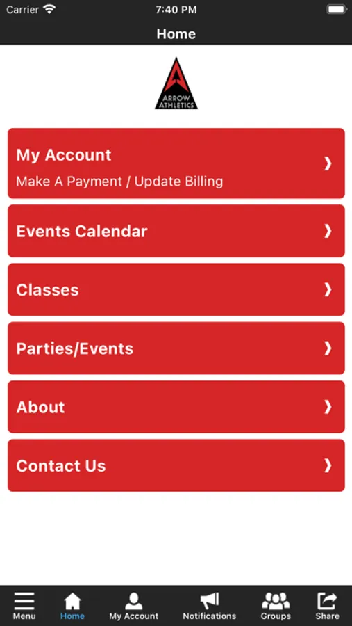 The Arrow Athletics app allows you to manage your account with ease, register for classes, parties, and special events. You'll also receive important notifications about class changes, closings, registration openings, special announcements, and upcoming events.