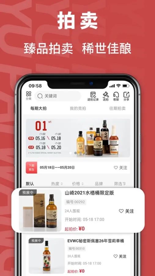 誉拍网是一款威士忌生态综合服务平台,涵盖威士忌零售、拍卖和爱好者交流社区等服务。汇聚国内威士忌爱好者,随时随地参与交流,时刻掌握威士忌价格趋势,致力打造一个属于威士忌爱好者交流的专业平台,拍卖属于新时代的收藏。