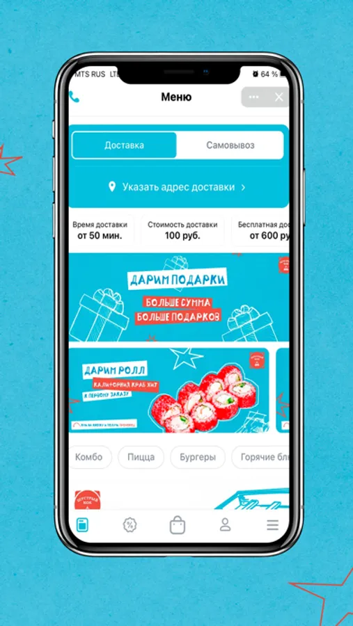 Проголодались? Наш курьер уже в пути! Выберите доставку суши, роллов и горячих блюд на дом или в офис в нашем приложении.