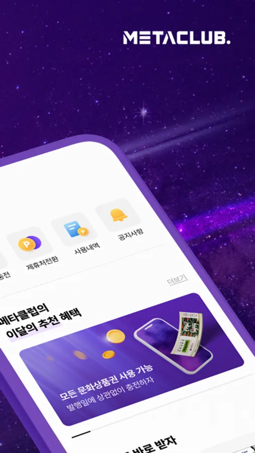이제 문화상품권의 온라인 전환은 메타클럽에서 편하게, 현금처럼 다양하게 활용해보세요!
