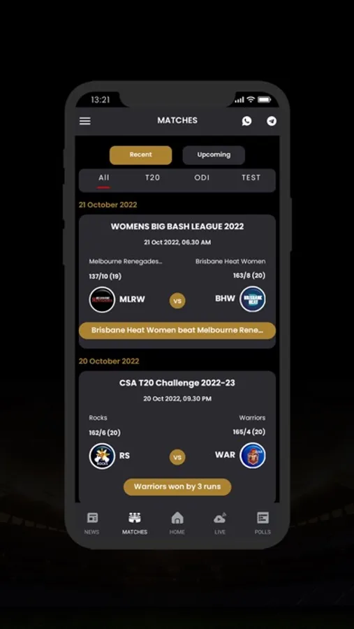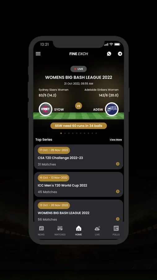 Here you will get access to Instantaneous Live updates, International matches, domestic matches and leagues and county cricket.