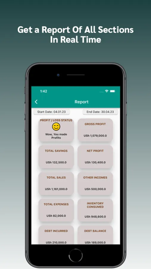 Profit / Loss Status, Gross Profit, Net Profit, Inventory Consumed, Total Expenses e.t.c