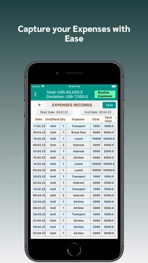 The total expenses and deviations from the set targets will be displayed in the notification window.
