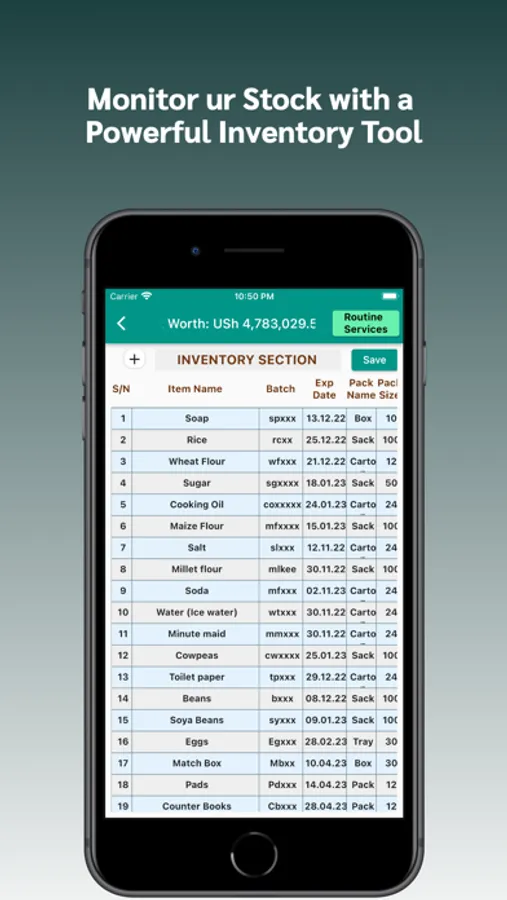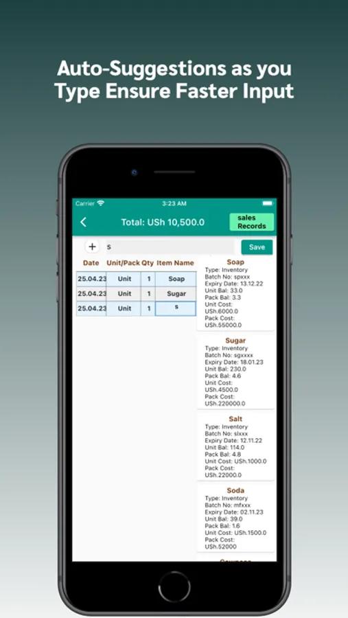 Your stock is entered and managed in this section. The data is dynamic and auto adjusts its self after every sales operation.