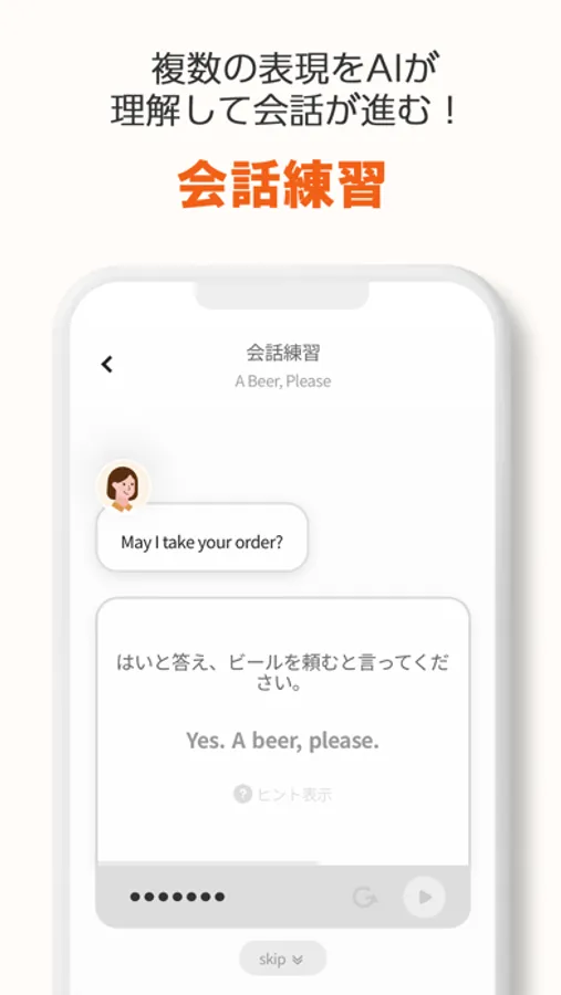 ・英会話となると緊張してしまうという初心者でも、AIが相手なので、安心して英語を話す練習ができます。
