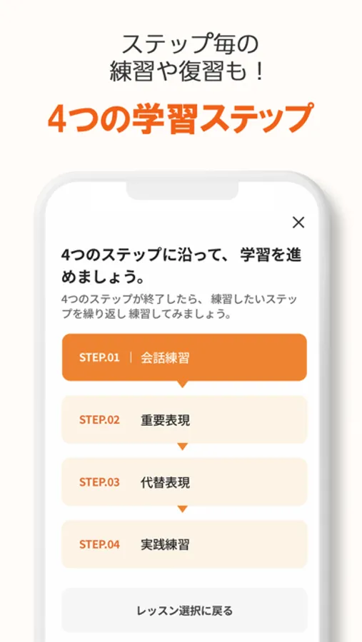 ・ほぼ全ての会話練習パートで、スマホに触れなくても会話練習できるので、ハンズフリーで英会話トレーニングができます。