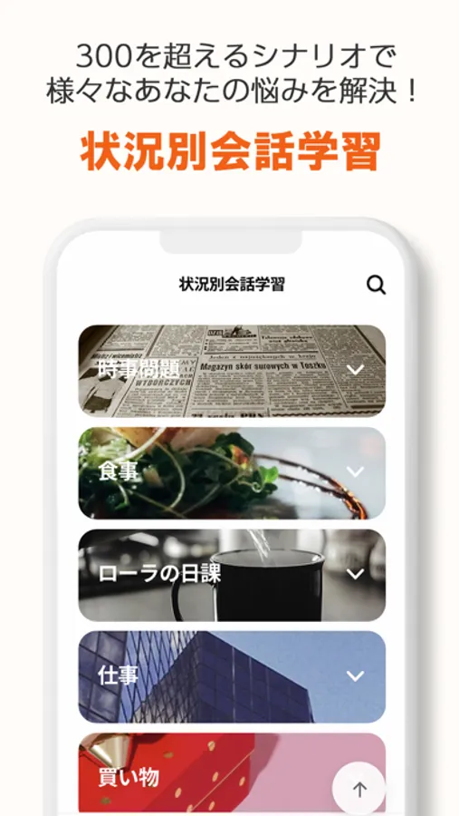 ・ダイアログのレベルは、入門から上級まで5レベル。また325種類の様々なシチュエーションの会話を用意しています。