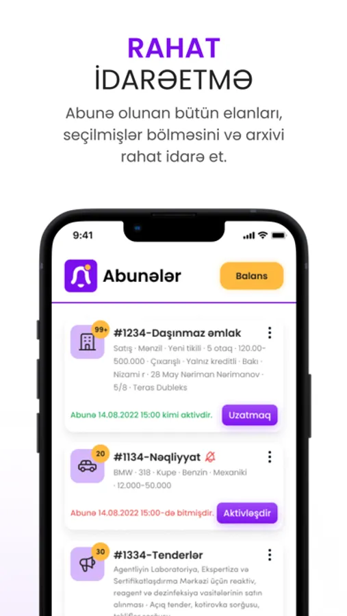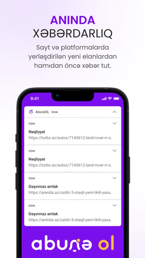 Seçilmiş meyarlar üzrə elanları ABUNƏ.OL tətbiqi əksər elan saytları və platformaları
