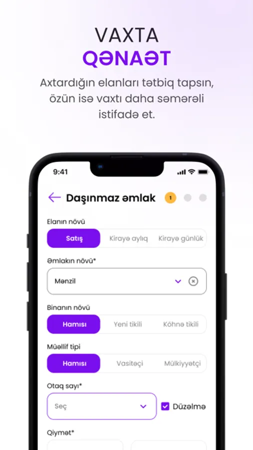 ABUNƏ.OL tətbiqi hər bir elan üzrə elanın birbaşa mülkiyyətçi və ya vasitəçi
