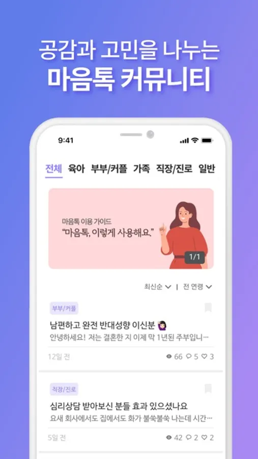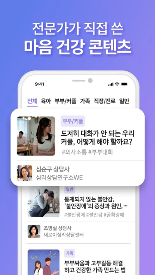 - 전문가가 직접 작성한 마음건강 콘텐츠