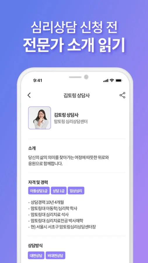 - 보다 자세한 센터와 상담사 소개