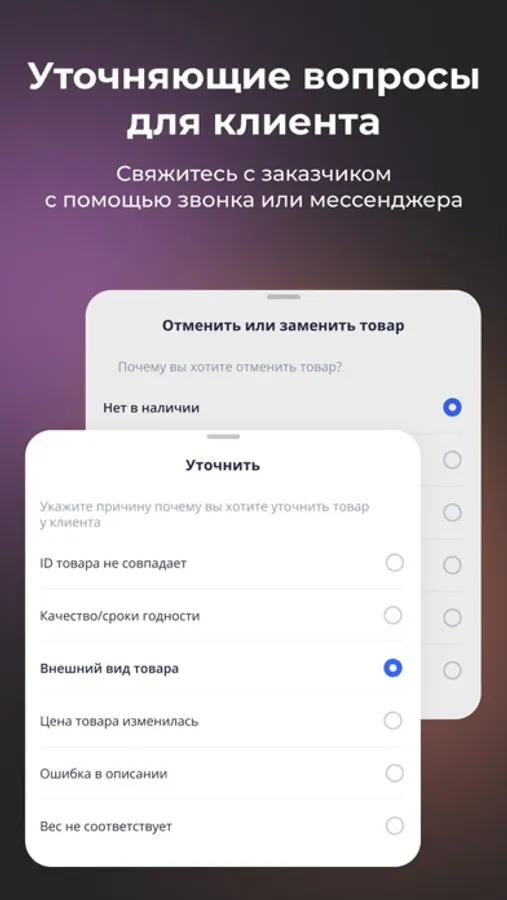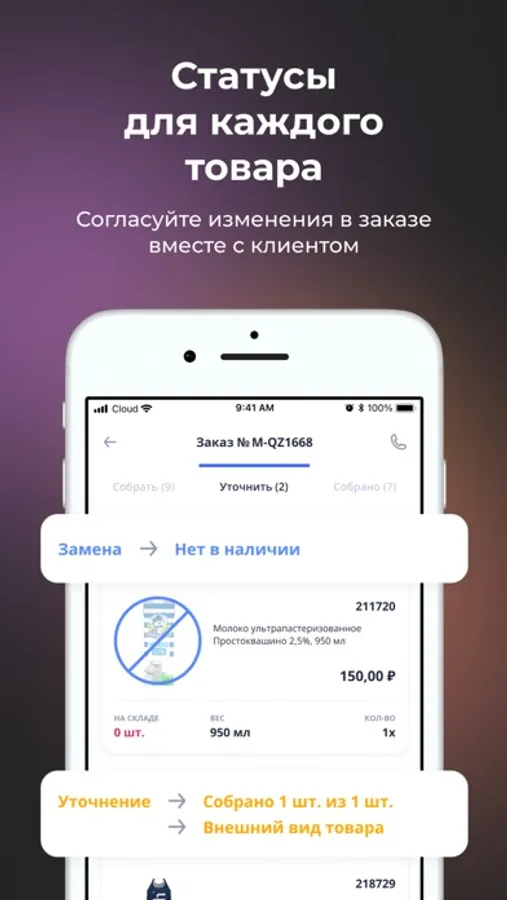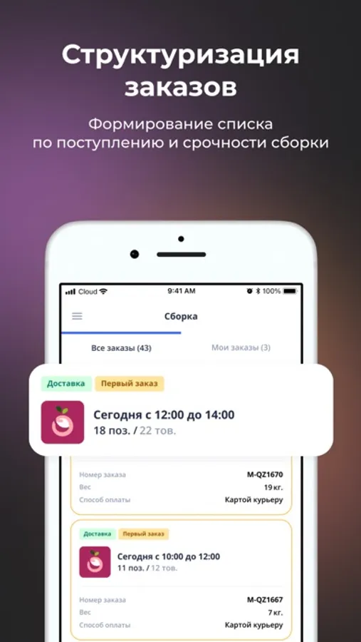 - Управлять заказами - от сборки до доставки.