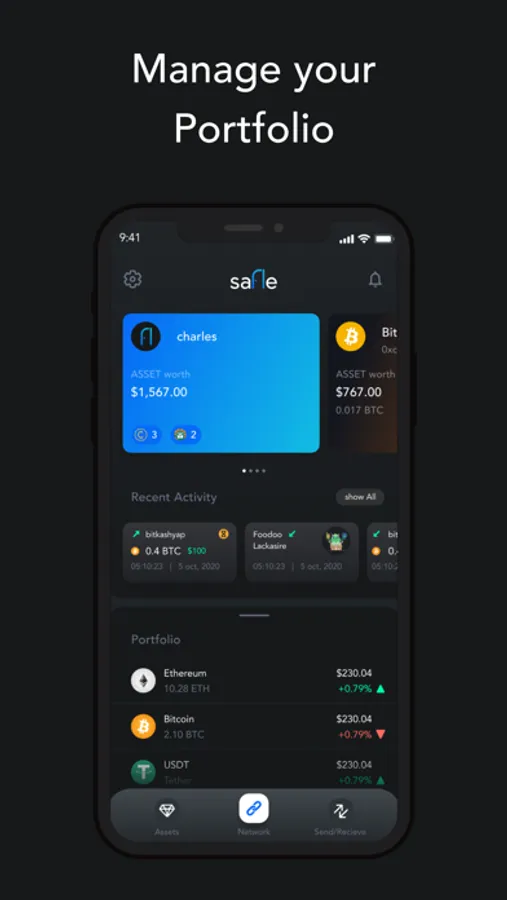 The Safle app is a wallet and a Web3 browser that lets you send, receive & manage your digital assets on the go.