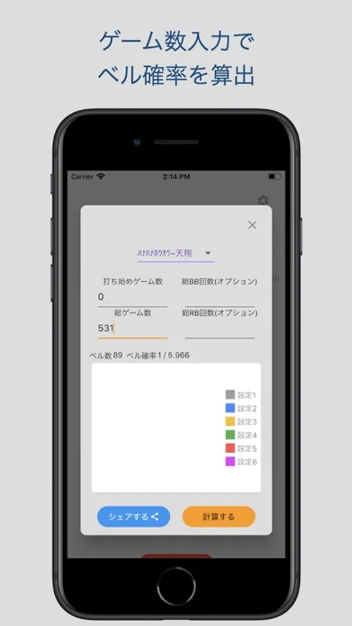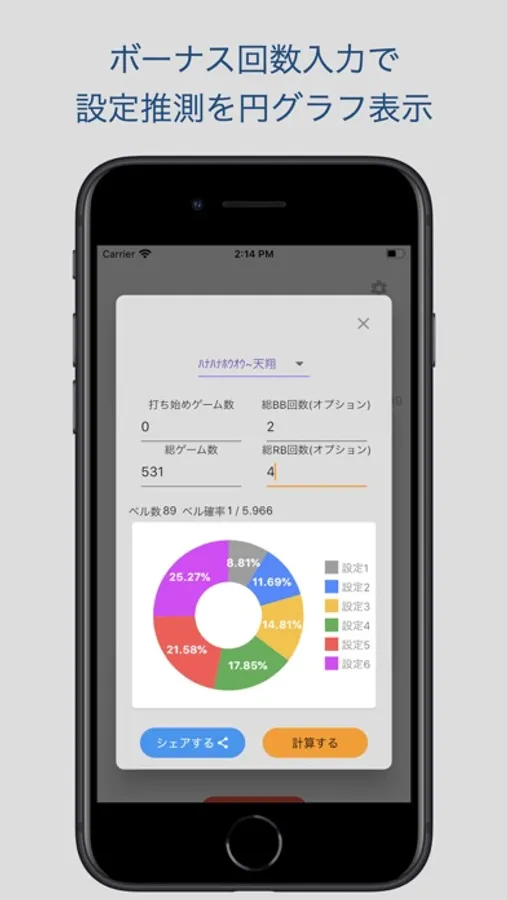 ベル確率算出とボーナス確率からの設定推測機能をつけています
