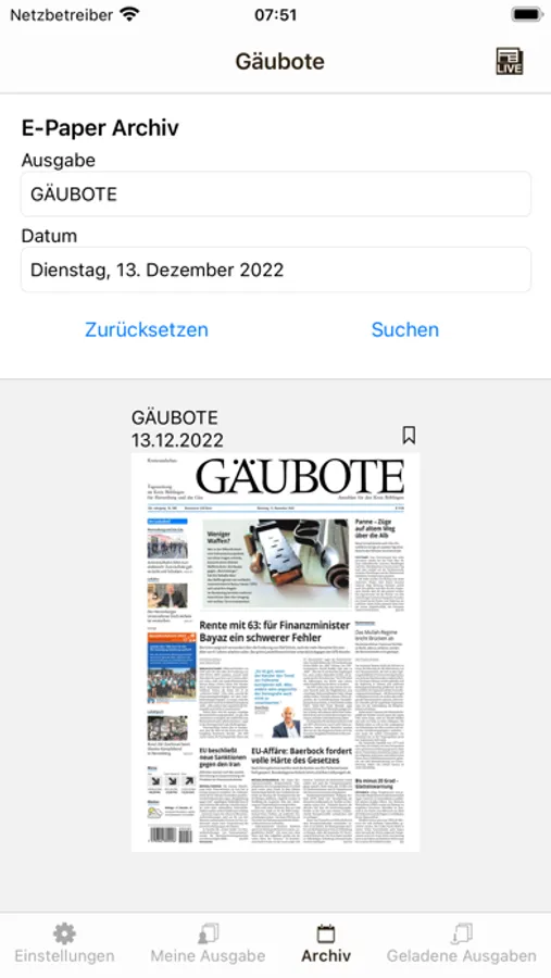Den Gäubote gibt es nun auch als App. Lesen Sie das E-Paper so komfortabel wie noch nie. Die App muß zum Herunterladen des E-Papers online sein. Danach kann die Zeitung auch offline gelesen werden.