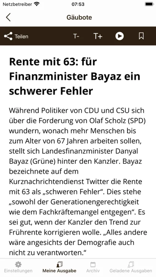 - Anwahl von einzelnen Artikeln und Darstellung in der Textansicht.