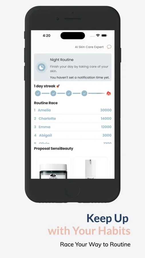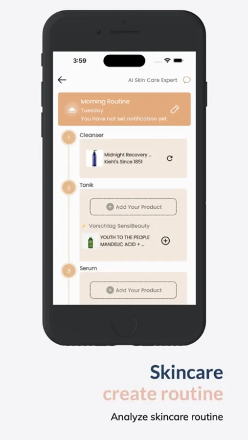 • A smart, adaptive notification system that helps you keep track of your skincare routine and habits.