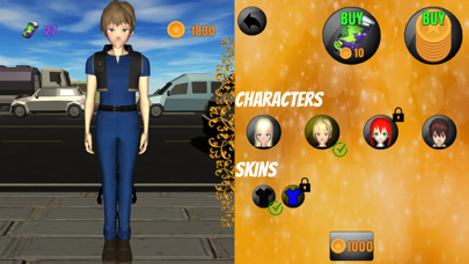- Gain coins and spend them to buy characters/skins and energy drinks!