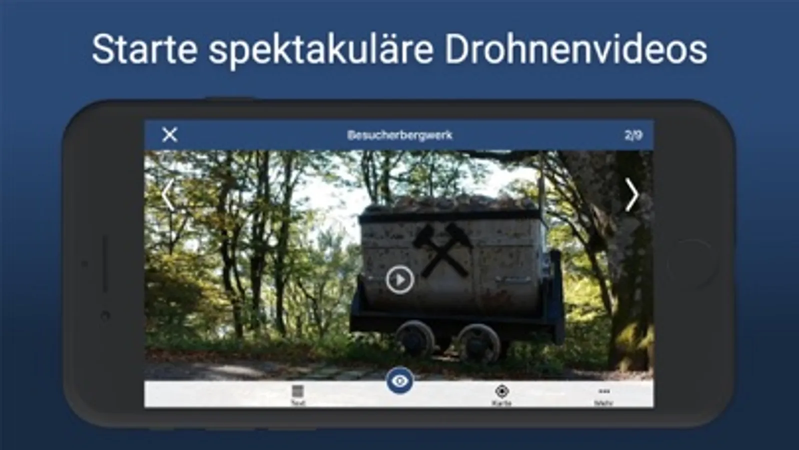 Stationen und Wege am Schauinsland, die auf Grund steiler Zwischenpassagen nicht für Besucher*innen mit eingeschränkter Mobilität geeignet sind, können in der App durch den Aufruf von Drohnenflug Videos virtuell erkundet werden.