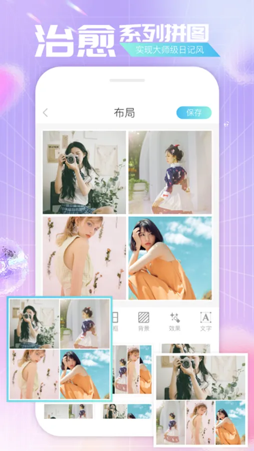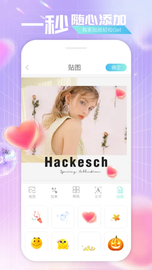 用独创的文字、滤镜、贴纸、背景、特效、颜色等素材,让你的照片栩栩如生。
