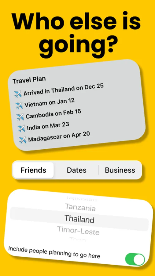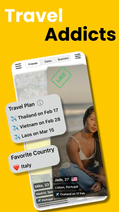 Find friends to go surfing with in Hawaii, get a date on the beaches of Thailand or find the perfect business partner in Lisbon. With Nomadicts you can find people who'll be travelling to the same destinations as you before either of you arrive.