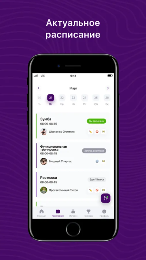 Посмотреть актуальное расписание тренировок;