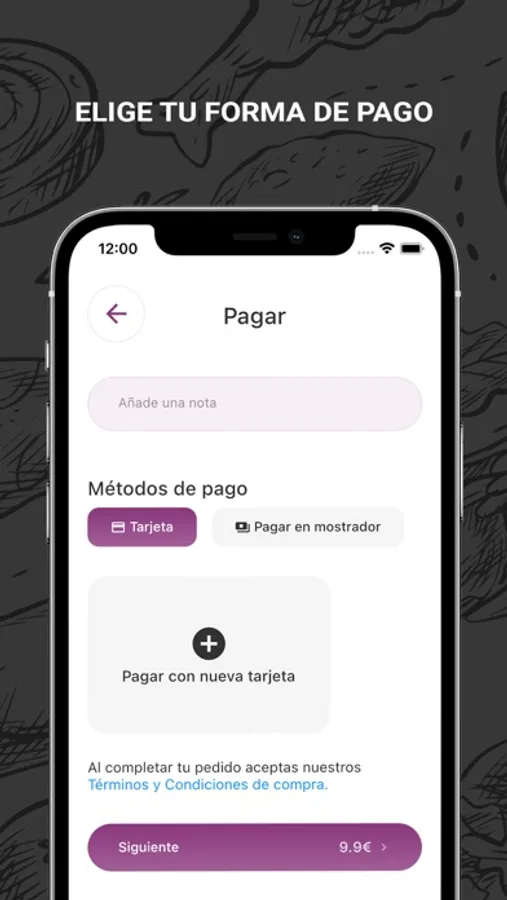 Podrás seguir tu pedido en tiempo real y te avisaremos cuando esté listo. Y si te encuentras en el restaurante, olvídate de esos tiempos de espera mientras el camarero te trae la cuenta. ¡Podrás pagar tu pedido desde tu propio móvil!