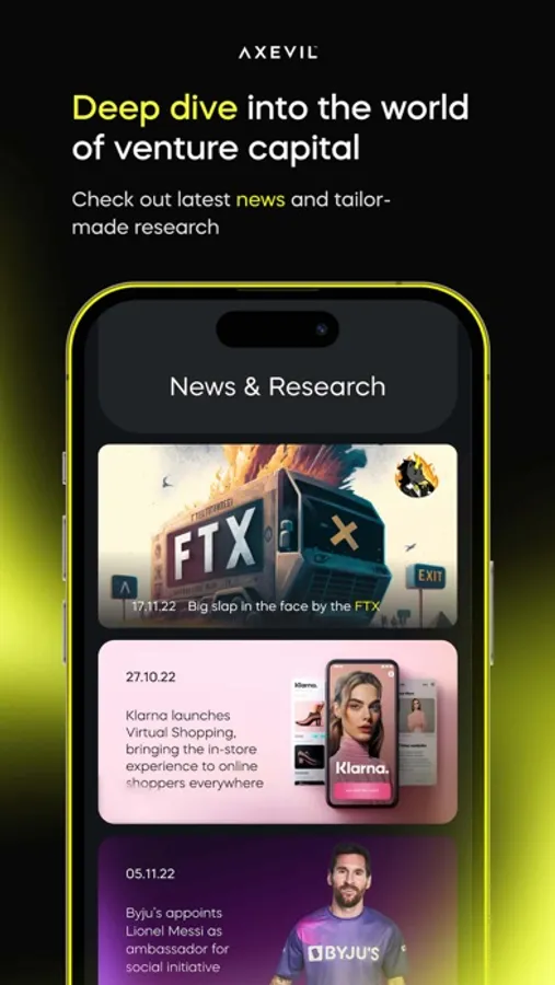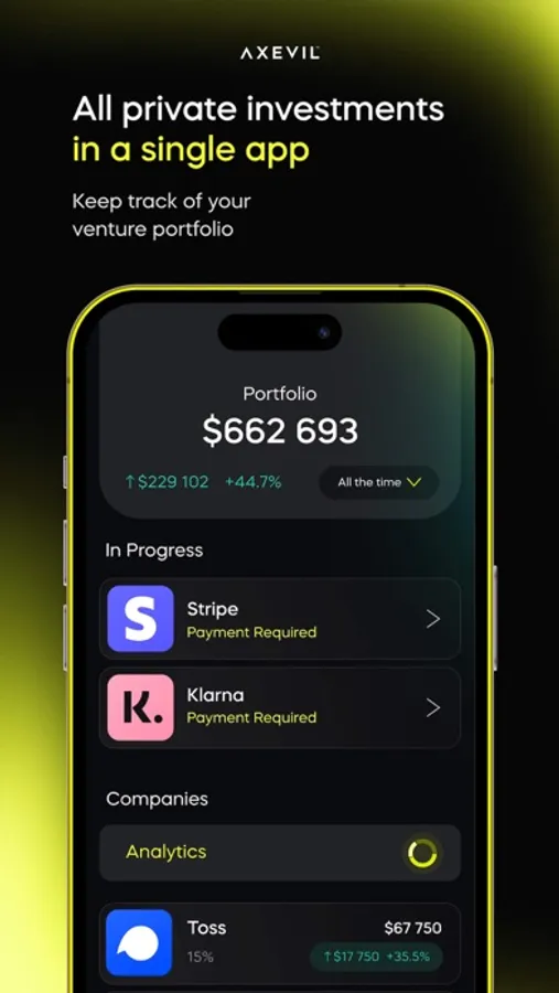 Invest in the future before it goes public! AXEVIL lets you access exclusive pre-IPO opportunities in leading tech companies. Our mobile app opens the door to a new type of investment, previously only available to top-tier funds. Gain deep insights into the world of venture capital, make better informed decisions, and build your portfolio.