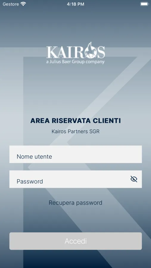 Kairos Wealth è un’applicazione dedicata ai clienti di Kairos Partners SGR che permette di visualizzare in tempo reale la propria situazione patrimoniale.