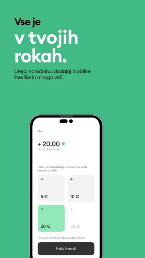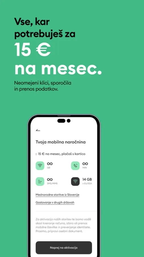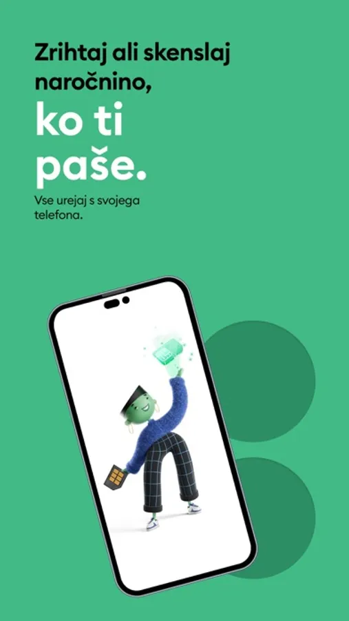 V eni aplikaciji upravljaš vso svojo mobilno komunikacijo. Skleneš in prekineš naročnino, dodajaš mobilne številke in urejaš sredstva za tujino. In vse to le s telefonom! Če se karkoli zatakne, pa smo vedno tukaj zate prek klepeta ali v naši re:lavnici. Brez slabe glasbe ob čakanju na telefonski liniji ali slabe volje ob čakanju pred poslovalnico!