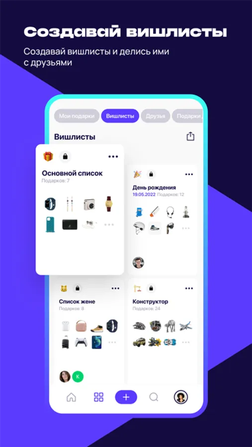Удобное и красивое приложение вишлистов на русском языке для тебя и твоих друзей.