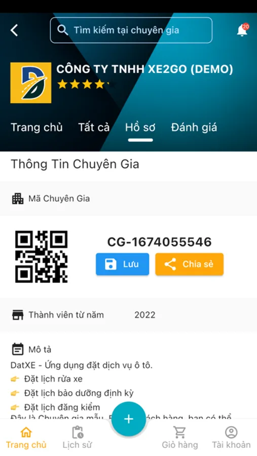 DatXE - Ứng dụng đặt dịch vụ ô tô xe máy. Khách hàng quét mã QR Code của chuyên gia, đặt dịch vụ bảo dưỡng và sửa chữa xe; đặt lịch đăng kiểm; lên đơn hàng và mua hàng hóa.