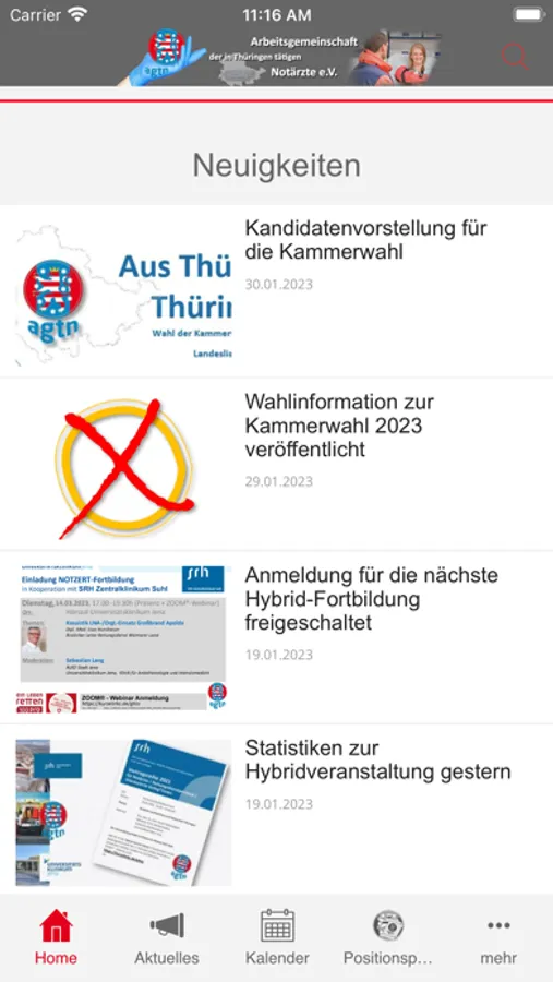 Informationen, Neuigkeiten und Termine zur Fortbildung im Thüringer Rettungsdienst werden hier seitens der agtn e.V. in unregelmäßigen Abständen veröffentlicht. Die Nutzer können an aktuellen Umfragen teilnehmen und damit die Positionen der Arbeitsgemeinschfat der in Thüringen tätigen Notärzte e.V. maßgeblich mitbestimmen. Die agtn e.V. veröffentlicht hier Positionspapiere zu aktuellen Fragen und Problemen des Thüringer Rettungsdienstes. Als Nutzer können Sie selbst Inhalte (Fotos und Texte) hochladen (unter Vorbehalt der Prüfung).