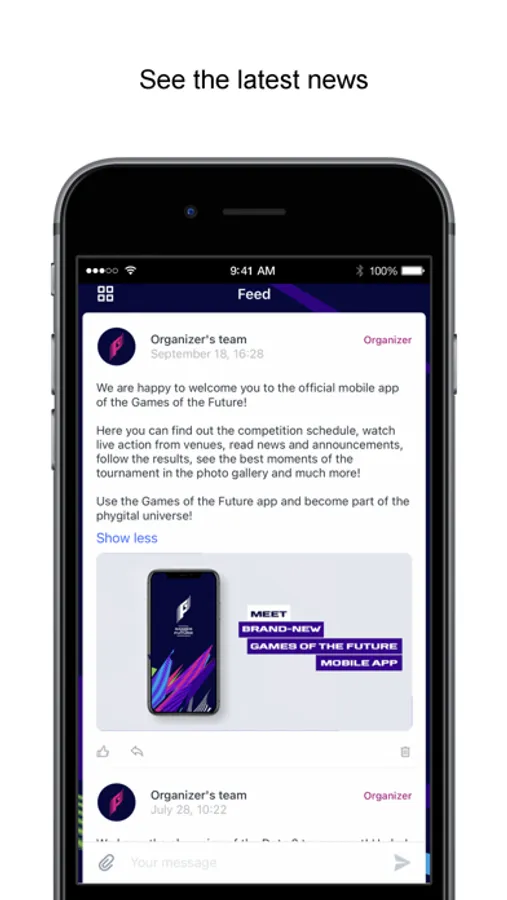 Install the app and dive into the sport of the future: watch live action from venues, read news, follow the schedule and results, see highlights in the photo gallery and so on!