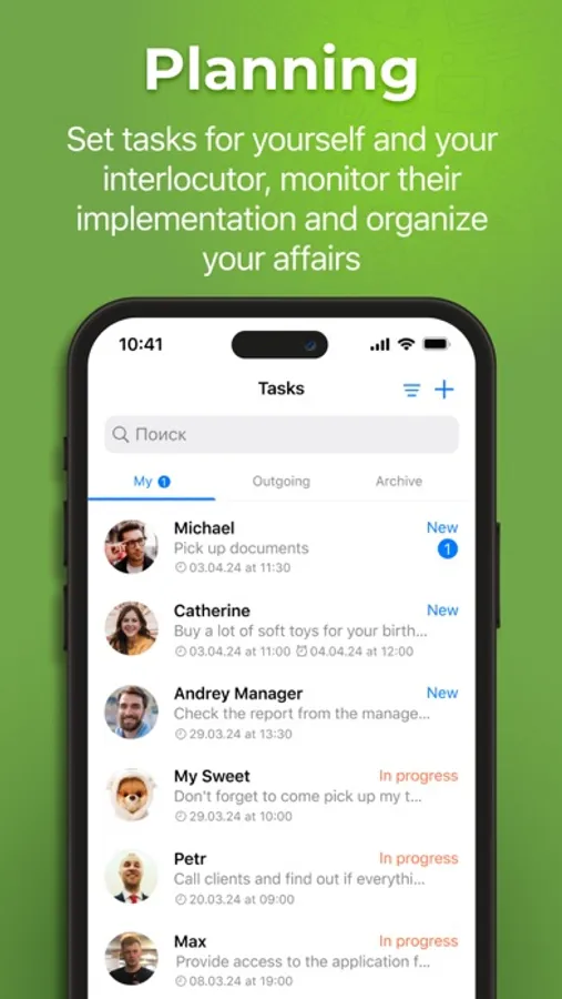 Track goals and tasks, monitor progress, set deadlines, reminders, and add comments - everything is clear and organized in a familiar interface.