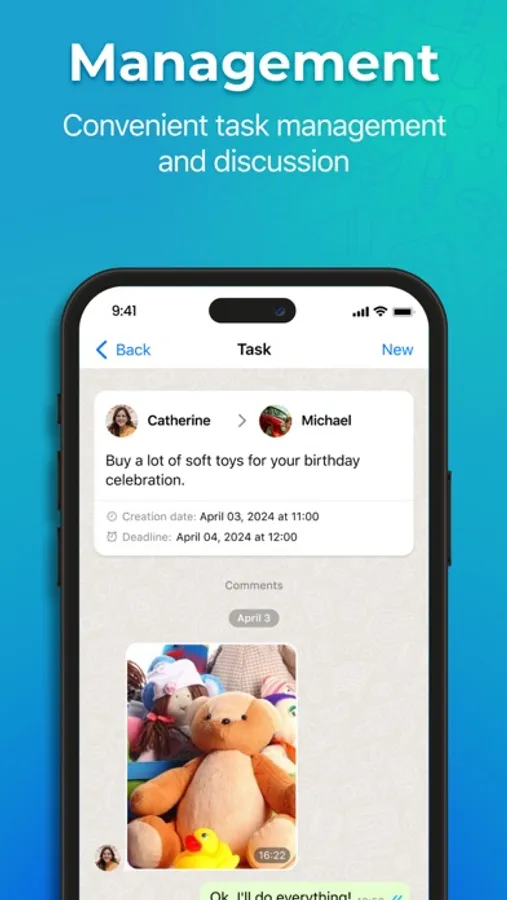 No more switching between apps. Assign tasks to yourself or delegate them to others right during a conversation.