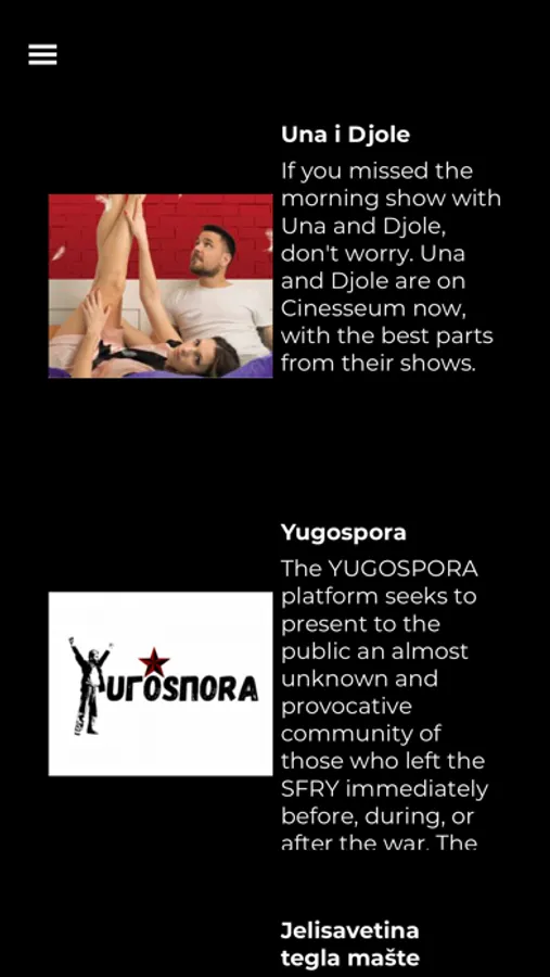 Cinesseum is the first and only legal SVOD platform for watching ex-yu movies, series and podcasts online. The platform offers an opportunity to all people around the world to legally enjoy movies and other interesting video content. Cinesseum is like a buffet of video content. It currently offers more than 500 movie titles: blockbusters and classical masterpieces, with continuously growing catalog. Content is always available, one click away from you. It is "ad-free" and offered at very affordable monthly subscription price.