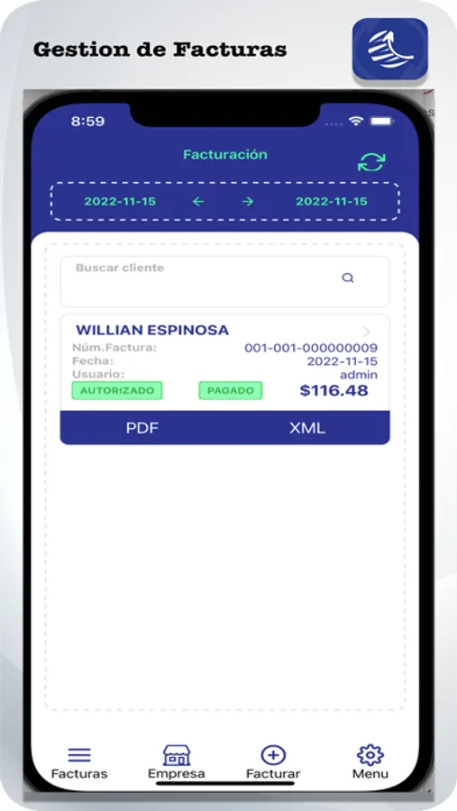 Nuestro app le permite realizar facturas inmediatas directamente a sus clientes y administrarlos desde la plataforma SIvo.