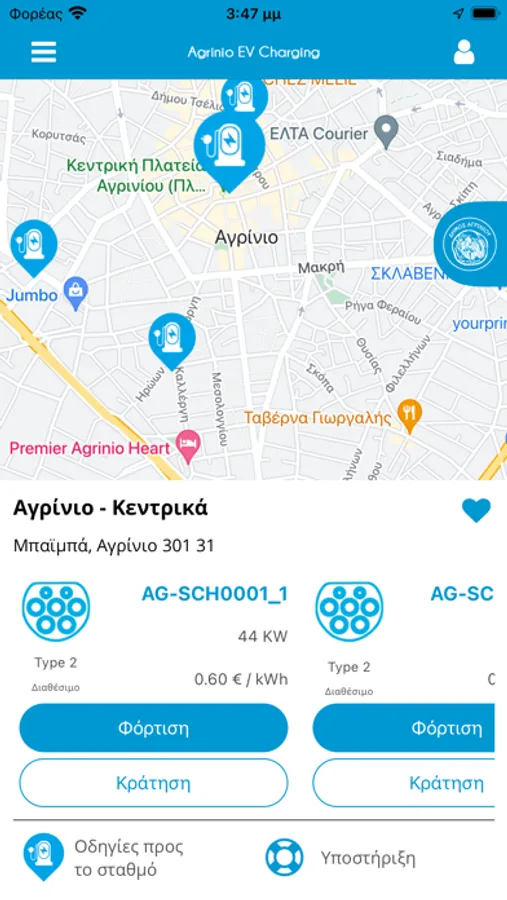 Η εφαρμογή “Agrinio EV Charging” δημιουργήθηκε για να κάνει τη φόρτιση του οχήματός σας όσο πιο απλή, εύκολη και ευχάριστη γίνεται στην πόλη του Αγρινίου.