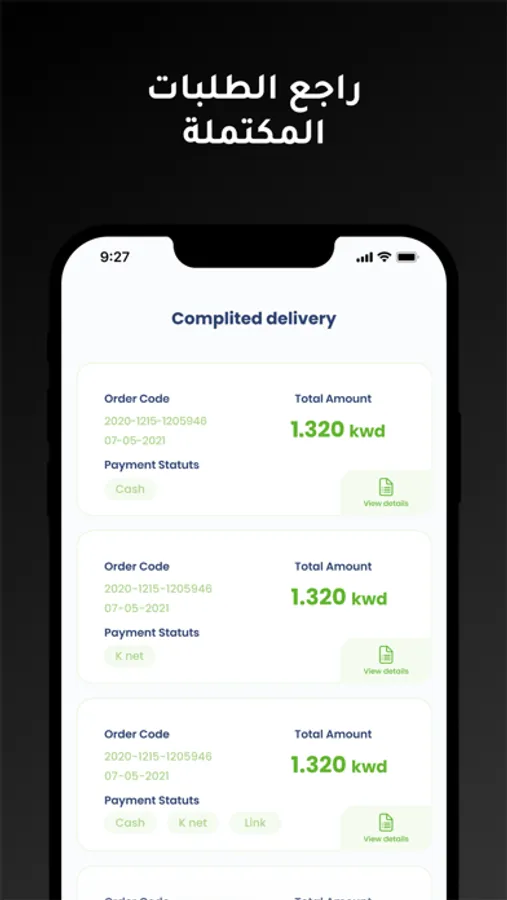 اوردركو: هو تطبيق يساعد السائق على توصيل الطلبات من مكان الى اخر بكل سهولة ويسر ، كما يساعد على تنظيم عمليات الاستلام للمبالغ بكافة طرق الدفع المتاحة  ،